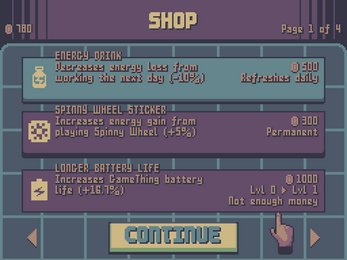 - At the end of the day, you can buy upgrades from the shop. Some refresh daily, some are permanent, and some are upgradeable.